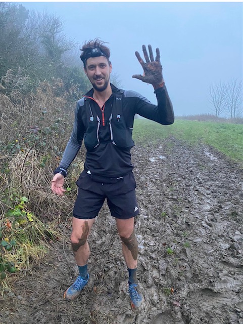 Normally around 80 miles a week as there is just no more time to squeeze anymore in, I’d be doing a mixture of trail, road, hills and flat. My dog Milo is the best training partner I could ask for, he is a border collie and we will often be as stubborn as each other as to who gives in first.